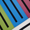 Boje strunjača su žuta, narančasta, zelena, plava i ljubičasta + bijela strunjača s džepićem za odlaganje simbola.