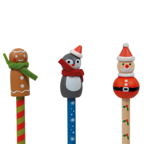 Svaka olovka ukrašena je simpatičnim 3D božićnim motivom - od okićenog drvca do malog medenjaka - i savršena je kao mali dar ili dodatak adventskom kalendaru.