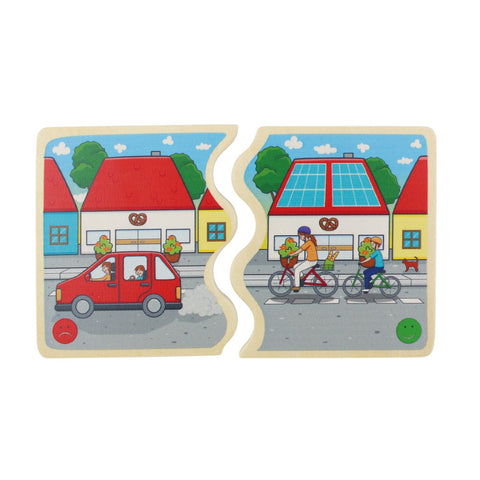 Didaktička slagalica za poticanje na razmišljanje o svakodnevnim navikama koje pomažu okolišu - pokazuje ispravne i neispravne izbore u svakodnevnim situacijama.