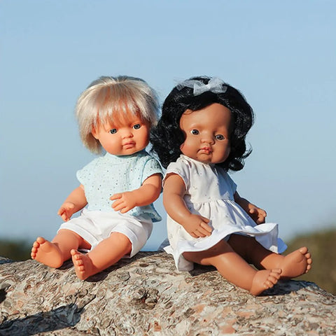 Ove kvalitetno izrađene lutke veličine 38 cm proizvedene su od mekanog, mirisnog vinila, realističnih su crta lica i imaju pokretne udove. Idealne su za simboličku igru, ali i kao alat u vrtićima, školama i terapijskom radu.