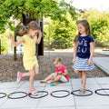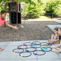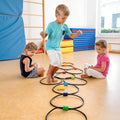 Set uključuje deset šarenih prstenova i tri vrećice za bacanje, koje se mogu kombinirati u različite staze i zadatke.